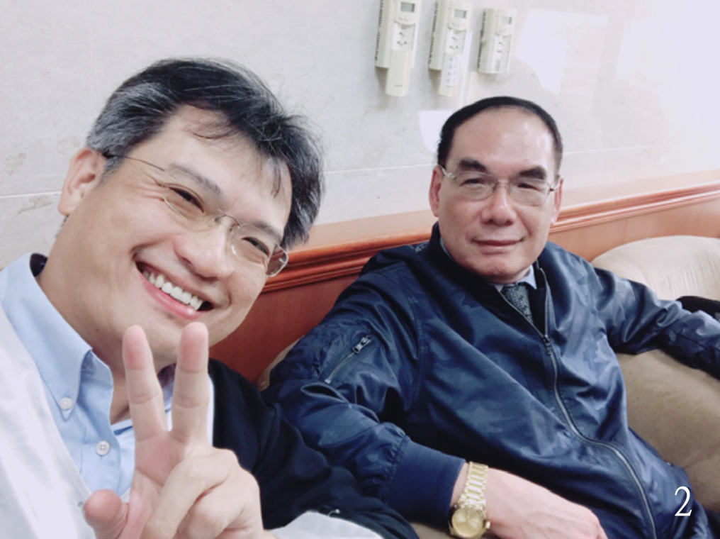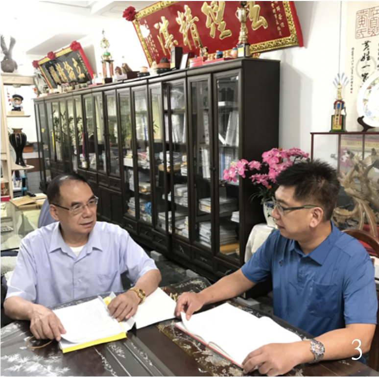 黃丁風律師與長子黃鴻霖 ( 立成資產管理股份有限公司董事長 ) 在辦公室研商公司業務合影。
